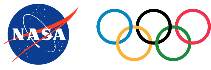 The spherical shape of the Nasa logo (bottom left) is the same shape as planets, and clearly represents the unity of our plant Earth. The Olympic rings (bottom right) have a similar meaning of unity as well. The interlocking rings have a strong feel of community and teamwork. Both symbols convey a sense of community and close bond.