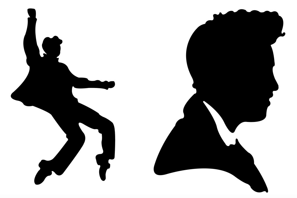 For my first ideas, I did two simple silhouettes of Elvis. The design of the top left hand side was inspired by Elvis’ Jailhouse Rock dance moves. The design on the top right hand side is a generic silhouette of Elvis. These are only starting points, and I will show these designs to my group partner and we will decide if we can work and develop them, or may come up with some new ideas. If these designs were to be developed, I would frame them in a suitable shape from our research on shape psychology.