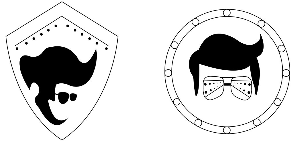 The design on the bottom left was inspired by the shape of the FBI badge, which was the reason the mugshots of Elvis were taken. We felt that the shape captured the main reason of the project. We then added the FBI headquarters in the background and an iconic design of Elvis (the hair and glasses). Overall we are happy with the ideas behind the design but are unsure on the aesthetics. For the design on the bottom right, we changed the FBI badge shape to a circle, to represent a sense of community within the Elvis fan base. By using a circle, the interior almost looks protected, symbolising comfort and a close community. The circle gave us the idea of using our symbol as a buckle on Elvis’ icon belt. Within the circle, we have incorporated the iconic hair and glasses like in the first draft, but making it head on instead a side view. We feel that this is, as a whole, a much stronger image. The small circles within the bigger ones will be diamonds which will be added if we go ahead in making the symbol as a belt piece. Both symbols have been hand drawn.