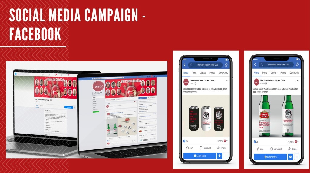 A Limited edition range of cricket inspired Stella Artois lager to encourage sign-ups, increase publicity of the WBCC and help raise money for the PCT, all while keeping current members happy through a social media campaign, and collectable memorabilia.