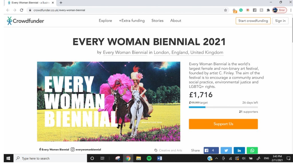Our creative challenge is to promote the Crowdfunder for Every Woman Biennial to amplify the reach and drive people to donate while thinking about concepts and designs. Our ultimate aim is to raise £100K.