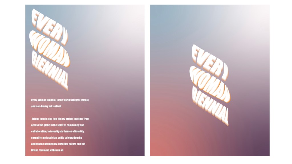 I would improve this project by making the deck look more appealing, with much less copy and more visuals. I also feel that more visuals were needed, along with a marketing campaign or stunt to bring more attention to Every Woman Biennial. The visuals done by Amanda, I feel, don’t project the tone of voice we set for the brand, “bright, bold and beautiful”. To improve on this in the future, I will be more honest about my thoughts to my team mates, and express my honest thoughts in a polite, but clear way.