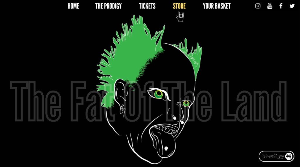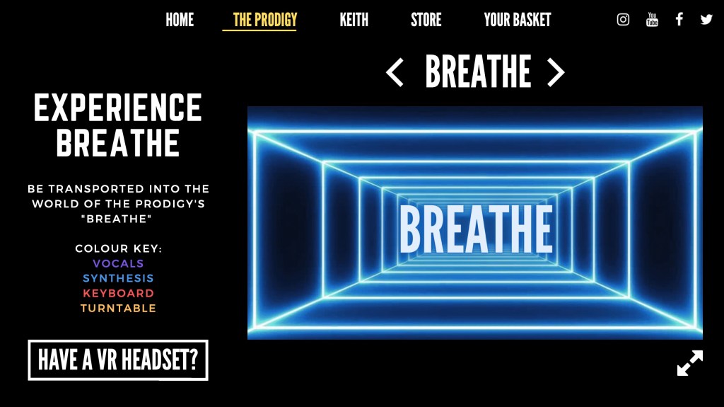 “The Prodigy” Menu option takes the user to a new page, where they can discover more about the album and the band, and can access the VR experience of Fat Of The Land