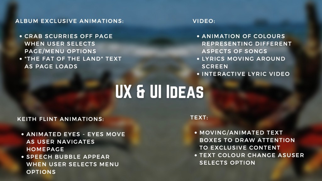 Initial inspiration to choose The Prodigy’s Fat Of The Land came from personal love for the band. They were one of the first bands my dad ever took to me see, and Fat Of The Land remains my favourite album by The Prodigy.