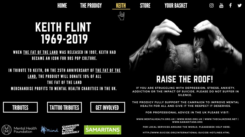 I felt a tribute to Keith Flint was necessary, as a page for his memory and the Prodigy’s “Raise The Roof!” project appeared on their official website as I was researching.
