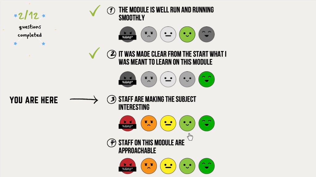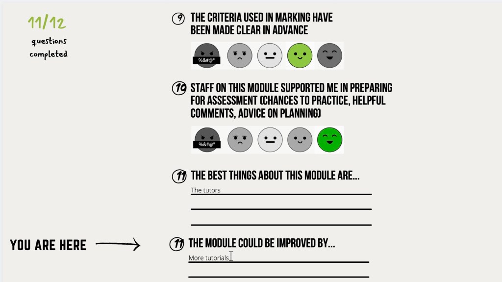 Data is crucial to design and evaluate any product or service, however gathering user data can sometimes be challenging, particularly when gathering feedback. Kingston University Module Evaluation Questionnaires to evaluate the teaching practice and student satisfaction.