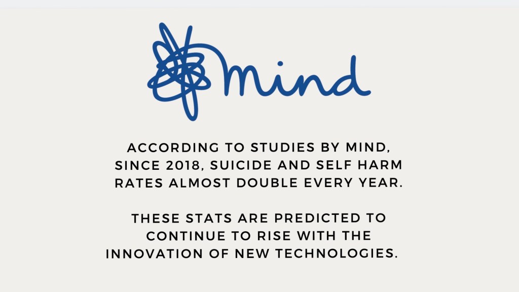 Mental health is becoming an increasingly explored topic in many areas, including design and technology. According to Mind, females aged between 16-25 are more likely to suffer from mental health problems. But why? My conclusion is that this age group spend more time of social media. With technologies advancing, we are spending more and more time online, and for this age group, that may be a bad thing.