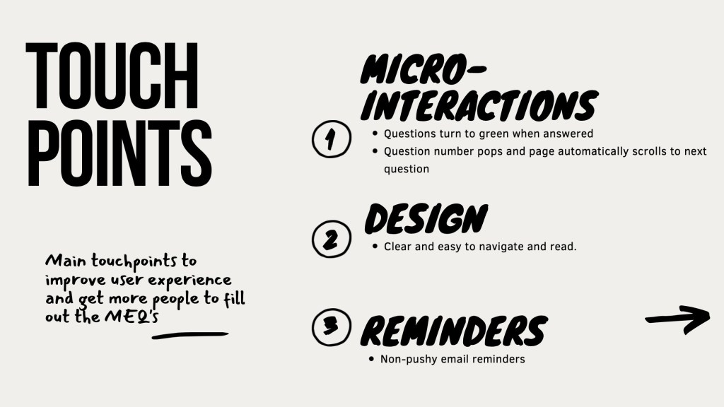 I kept the design simple and clear, after all, this is an MEQ, and there is no need to complicate it. The aim during the design process was to keep the MEQ simple to navigate, clear and practical. Students want to fill it in quickly, and move on with their day.